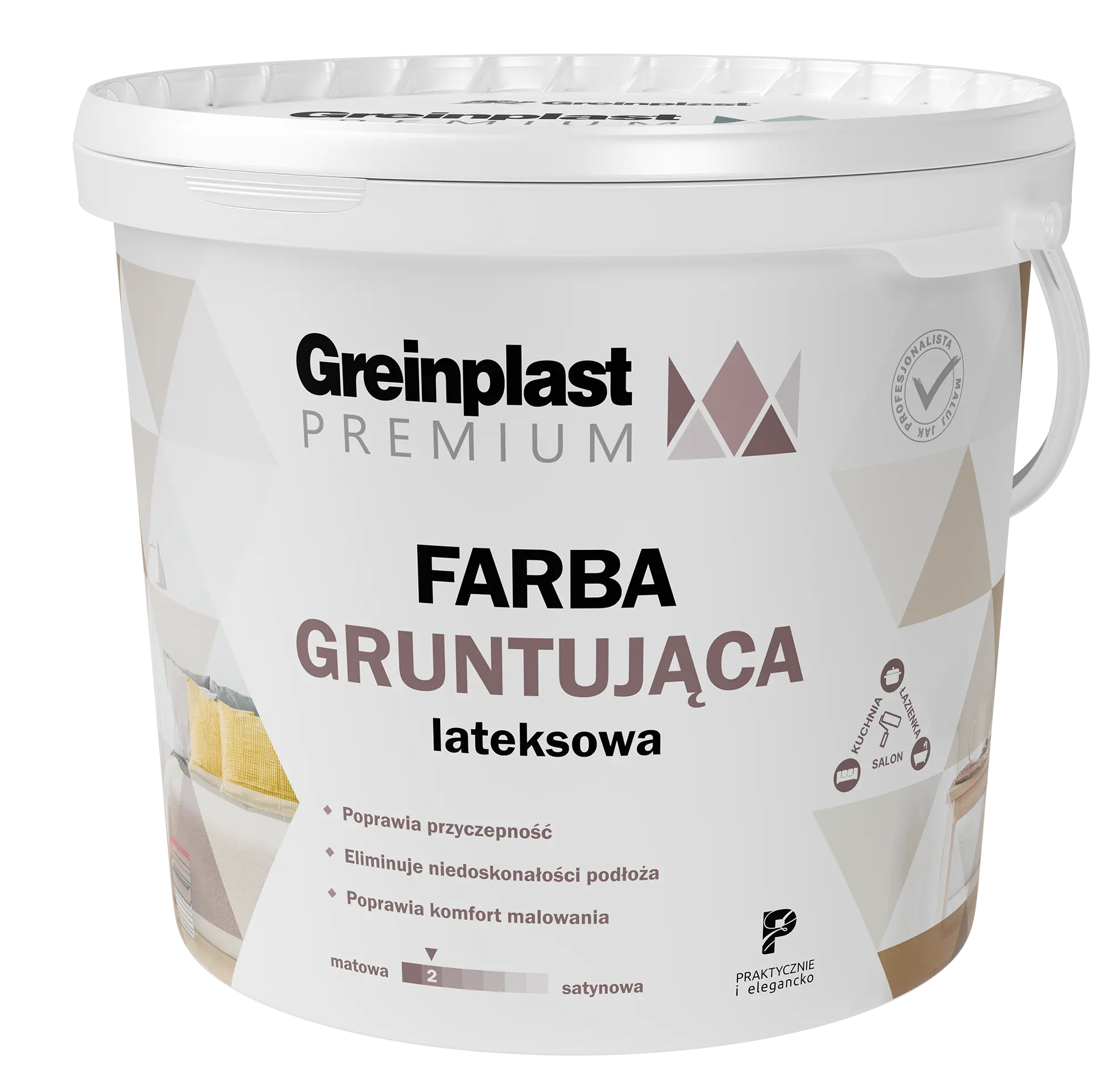 Latex priming paint for indoor use. It covers the imperfections of the ground very well. Ideally penetrates into the substrate and significantly improves its adhesion. It also reduces the consumption of topcoat. It is used for manual or spray application on stable substrates and for making a primer before painting with Greinplast inks. The paint can be used on concrete substrates, cement and cement-lime plasters, gypsum plasters, G-K boards, thin-layer plasters, etc. The product is available in white. At the customer's request in a color similar to the final paint coating.
